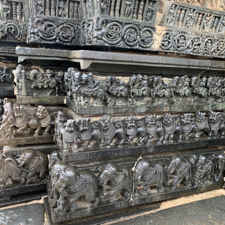 Both were intriguing. The Hoysala reigned for 300 years, and after initially borrowing from the existing Ganga and Chalukya architecture, they developed their own style, whose beauty and skill were acclaimed globally at their time, and now by UNESCO.